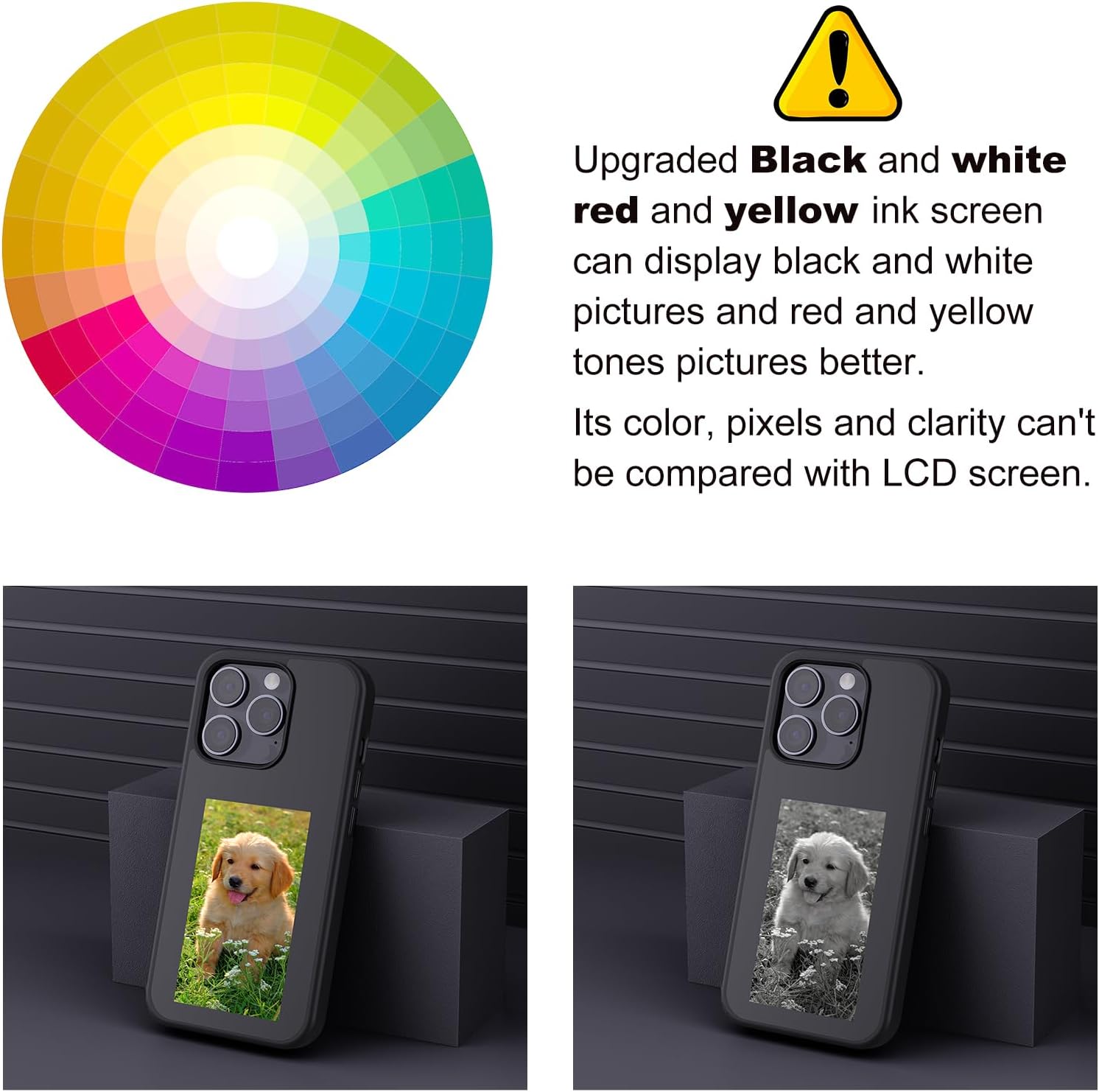 Instantly update your case display with photos or designs using NFC technology.